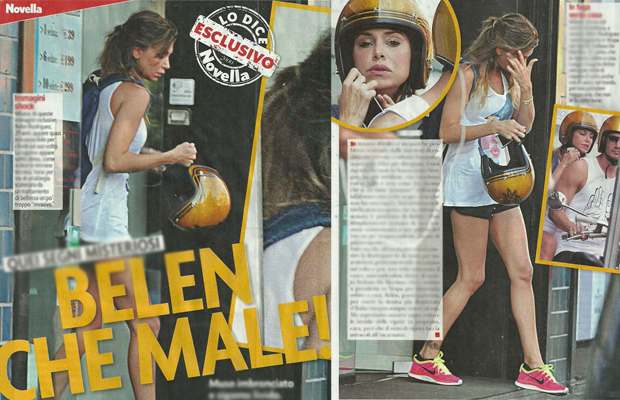 È Novella 2000 a pubblicare le foto di una Belén Rodriguez un po' provata all'uscita di un noto centro estetico milanese. Evidentemente imbarazzata dall'arrivo dei paparazzi, è stata subito portata via in motorino da suo marito Stefano De Martino.
