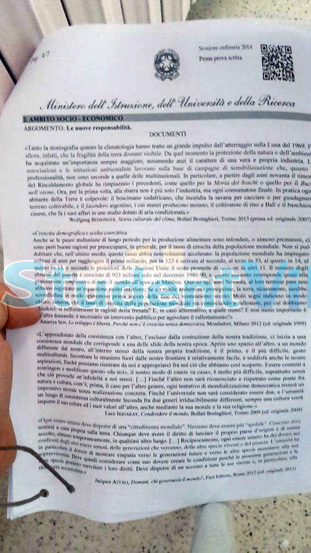 è la seconda traccia proposta ai maturandi, mentre quella di storia ha come titolo