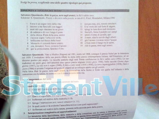 Quasimodo era uno degli autori più “gettonati” nel tototracce di quest’anno. La poesia scelta dal Miur per l’analisi del testo sarebbe: “Ride la gazza nera sugli aranci”. Ecco le immagini